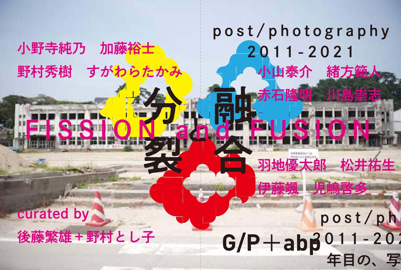 2011年の東日本大震災から、2021年で10年が経過した。それは地震・津波・福島第一原発のメルトダウンによる放射能被害が重なった未曾有のカタストロフィーであり、その後の日本社会に今も大きな影を落としている。この写真集は3月10日から15日まで銀座奥野ビル306号室で開催された写真展「FISSION(分裂)and FUSION(融合)POST/PHOTOGRAPHY 2011-21 3.11から10年目の、写真の今と未来」展のアーカイブであり、このカタストロフが写真をどう変成させ続けているかを記録する。12人の参加者は、3種類のアーティストから構成されている。当時のカタストロフをG/P galleryのメンバーとして現地を訪れ撮影した小山泰介、緒方範人、川島崇志、そして多大な影響を受けた赤石隆明。当時は全く「他者の物語」として事件を体験し、その後、放射能など「日常化したカタストロフ」の中で写真制作を余儀なくされた羽地優太郎、伊藤颯、松井祐生ら若手作家。そして、銀座奥野ビルという東京の銀座の一等地にありながら、ビルの廃墟化やバブル経済の波に抗して保存活動を行ない、なおかつ出身地が東北にあたるなど東日本大震災と個人的に深い関係を持つ者、すなわち、野村とし子、小野寺純乃、加藤裕士、野村秀樹、すがわらたかみ。これら3種類のメンバーが入り混じりながら作品の展示を行なった。それは会場を訪れた者に、さながら「ガレキ」のような混沌の印象を与えただろう。またこの写真集も、展覧会のアーカイブでありながら、見ての通り、通常の写真集ではない。各見開きのベーシックなイメージとなる会場写真は、参加アーティストの児嶋啓多が、iPhone12に内蔵されたスキャン機能により撮影し加工したものだ。